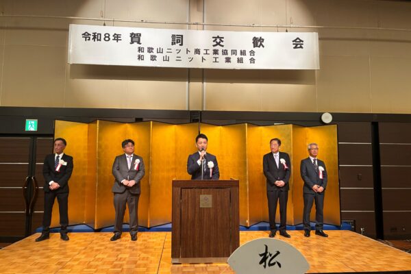 令和8年の新春を迎えるにあたり、『新年賀詞交歓会』を令和8年1月8日に開催いたします。新たな年の抱負を語り合い、飛躍の糧としていただく機会として、ご出席を賜りますようご案内申し上げます。詳細につきましては、(和歌山ニット商工業協同組合・和歌山ニット工業組合)事務局まで。よろしくお願いいたします。
